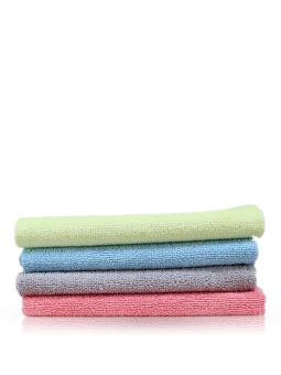 Le pack comprend 4 microfibres réparties en quatre couleurs (rose, bleu, gris et jaune), facilitant l'attribution de chaque couleur à une tâche spécifique et évitant ainsi les contaminations croisées.